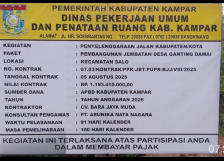 Pemerintah Desa Ganting Damai Bersama Kontraktor & Dinas PUPR Kampar Diduga Buat Surat Hibah Palsu Atas nama Pemilik Lahan Untuk Dapatkan Proyek Jambatan 1,2 Miliar APBD Tahun 2025.Kab-Kampar