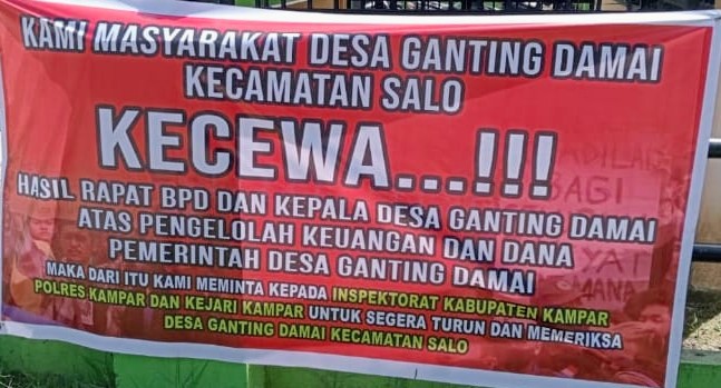 Pemuda Desa Ganting Damai mau Usut Tuntas Anggaran Dana Desa Ganting Damai Pertahun 1,4 Miliar- jangan Sampai Uang Kas Untuk Pemuda Pemudi Desa Ganting Damai Tidak di Keluar Oleh Kepala Desa atau Eri selaku ketua pemuda Sudah Jelas uang kas Pemuda itu ada Tolong Tunjukan Buku Kas Pemuda- saat ini Pemuda membutuhkan Biaya Untuk Latihan pacu Jalur ( Sampan ) dan Untuk Acara pekan keramaian dan apakah Anggaran sudah anda selewengkan dan Berapa Total Nominal nya Dan apabila uang tersebut tidak dikeluarkan Seluruh Pemuda Desa Ganting Damai bertindak bersama -sama – dan Pemuda Desa Ganting Damai- Tidak Akan Melaporkan kepala Desanya kalau uang kas Pemuda masi di korupsinya dan masih banyak uang Anggaran yang lain sama kepala Desa diduga uang tersebut di jadikan untuk Sogok dirinya agar tidak terjerat hukum – kades Ganting Damai tidak akan takut menghadap hukum di Kampar diduga hukum di Kampar bisa dibayarnya Mengunakan uang Anggaran Dana Desa apabila uang nya banyak hukum akan tajam kebawa dan Tumpul keatas- Sekarang Buat Hukum dari masyarakat dan pemuda pemudi Desa Ganting Damai- Hukum dari masyarakatnya Sendiri- Lakukan Demo yang bijaksana Jangan Merusak pasilitas Umum dan jangan Anarkis, Pemuda Desa Ganting Damai, Pasti Bisa Melakukannya Kudeta secara bijaksana. Ungkap pemuda Desa Ganting Damai kepada awak media